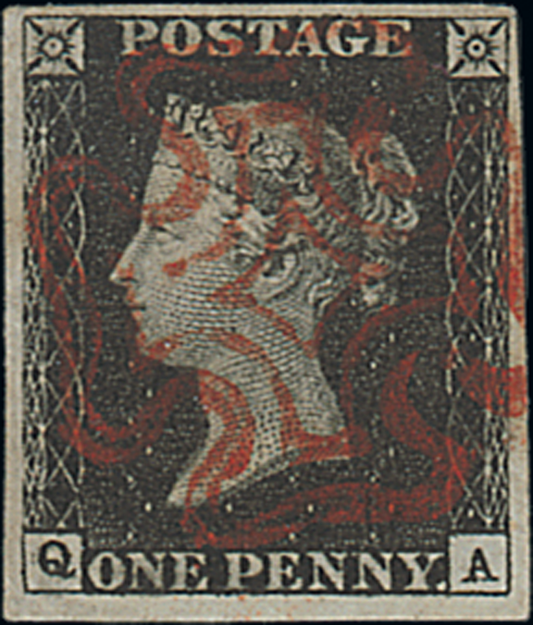 QA, crisp, practically complete and upright red Maltese Cross cancellation, good to large margins all round, fine. Photo