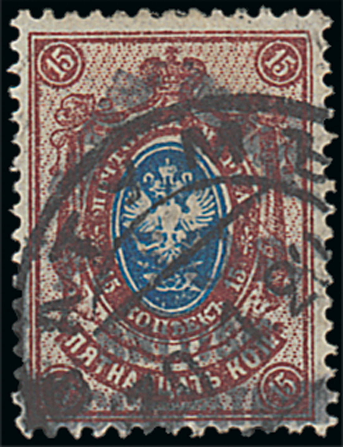 50r. on 15k. blue and red-brown, fine used; also a unused example with forged surcharge showing raised "5". B.P.A. Certificate (1944). S.G. 28, £900. Photo