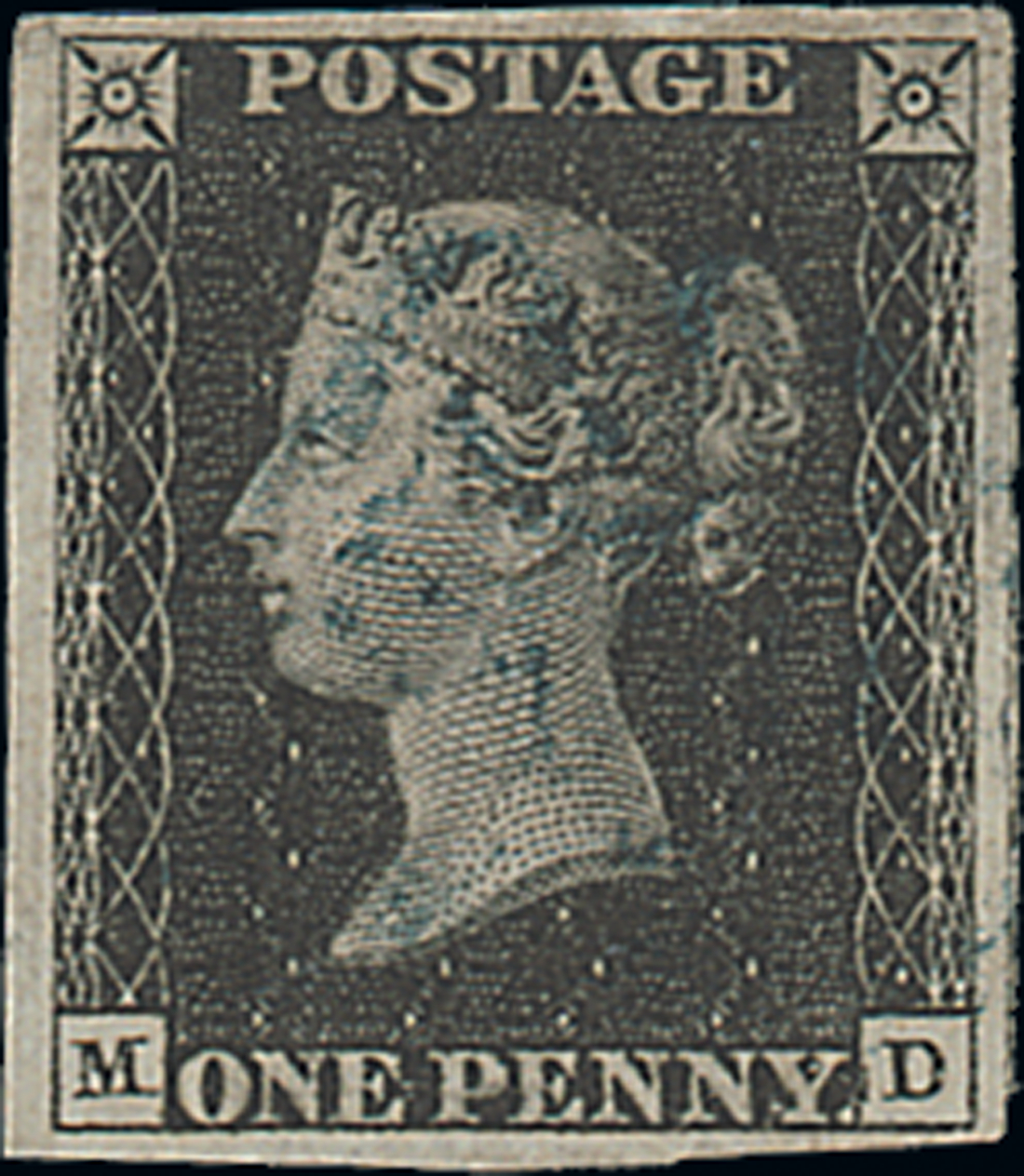 MD (constant variety), blue Maltese Cross cancellation, good to large margins and showing a trace of the adjoining stamp at right, pressed horizontal crease, fine. B.P.A. Certificate (2011). Photo