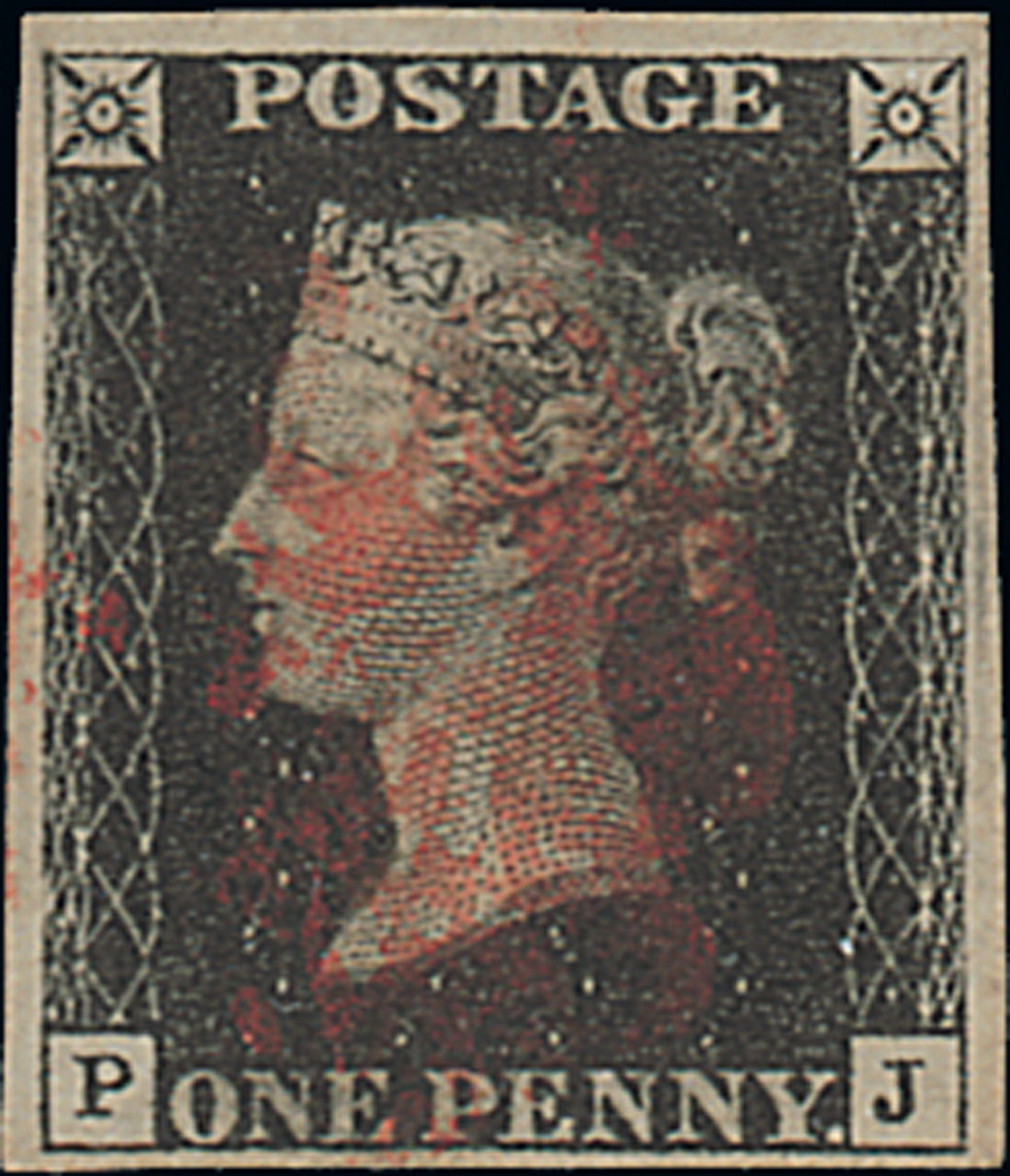PJ, red Maltese Cross cancellation, slightly close to very large margins all round; fine. Photo