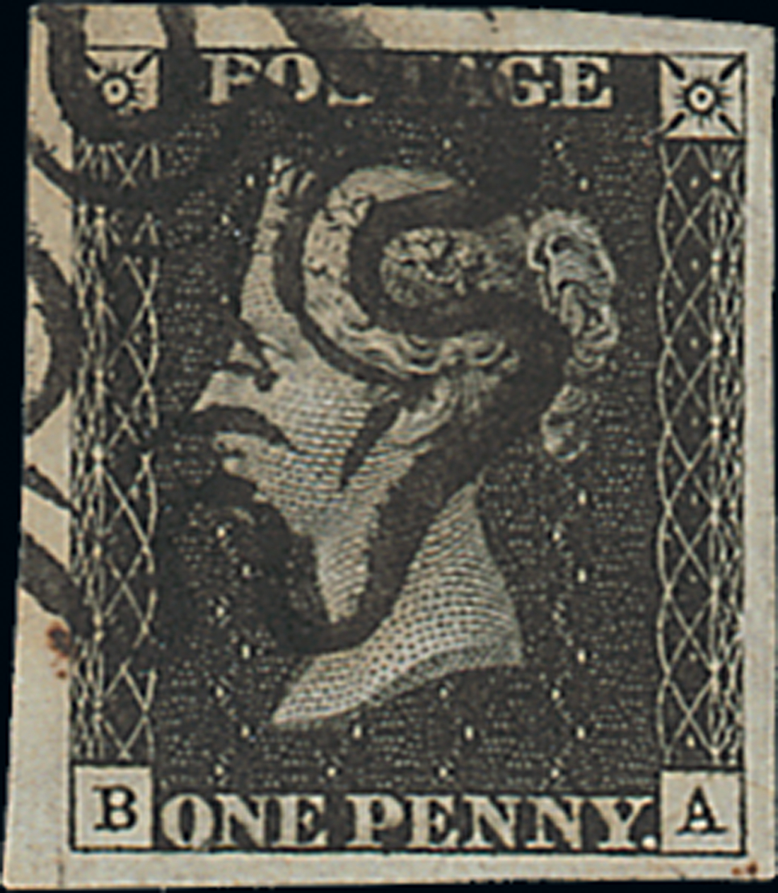 BA, crisp black Maltese Cross cancellation, good to very large margins all round, showing a trace of the adjoining stamp at top and part of the sheet margin at left; very fine. Photo