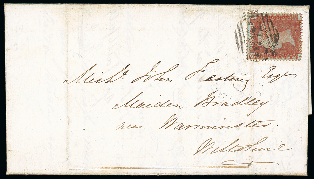 JI (?) placed sideways and tied by "202" barred oval cancellation of Chudleigh on entire letter dated 26 Dec. 1850 addressed to Warminster, dated markings on reverse, vertical filing folds, one affecting the adhesive, fine and an attractive early date. S.G. CE2, £2,600. Photo
