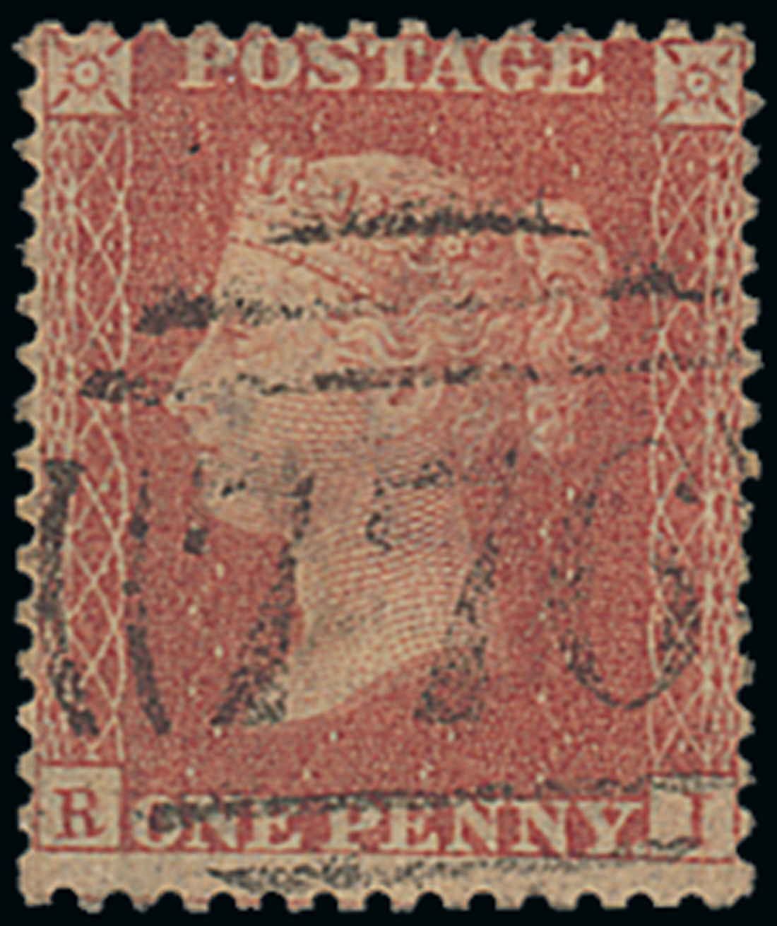 1d., Die II, Alphabet III, white paper, watermark Large Crown, perf. 14, Plate 33 RI, "776" barred oval cancellation, short perf. at top, fine and scarce, also Plate R17 LL and TE used, good to fine. Scarce. S.G. C10. Photo