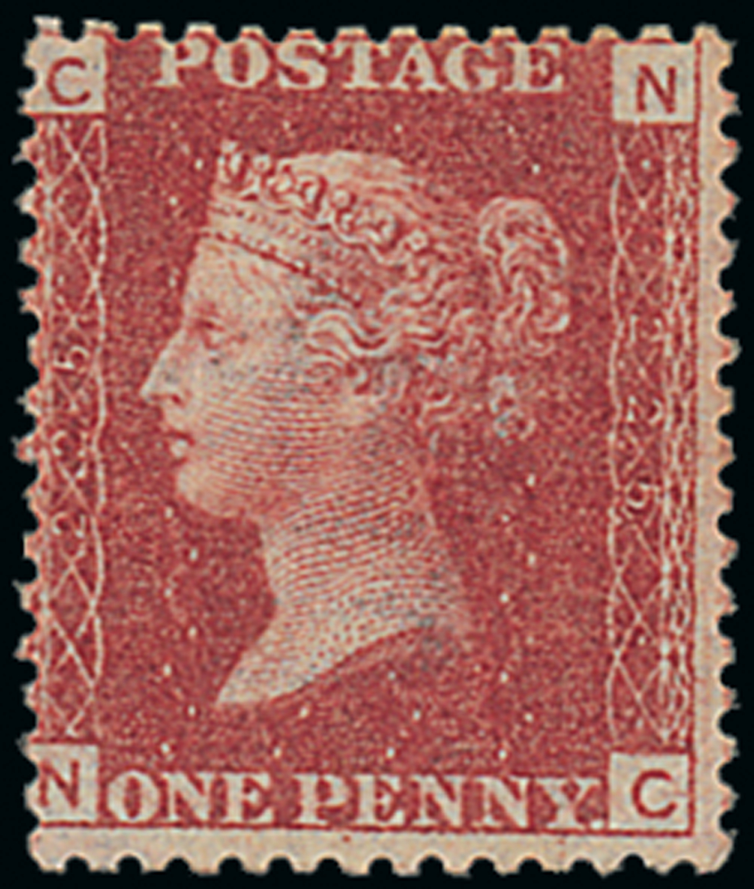1d., mint collection, 155 stamps, including Plates 78, 82, 83, 88, 105, 132, 133, 156 (block of four), 225 (large part original gum), etc., mixed condition but chiefly good to fine. Photo