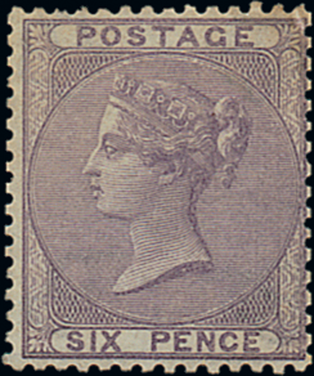 6d. deep lilac, unused (regummed), good colour and perfs., small corner crease at upper right, fine appearance. S.G. 69, £1,800. Photo