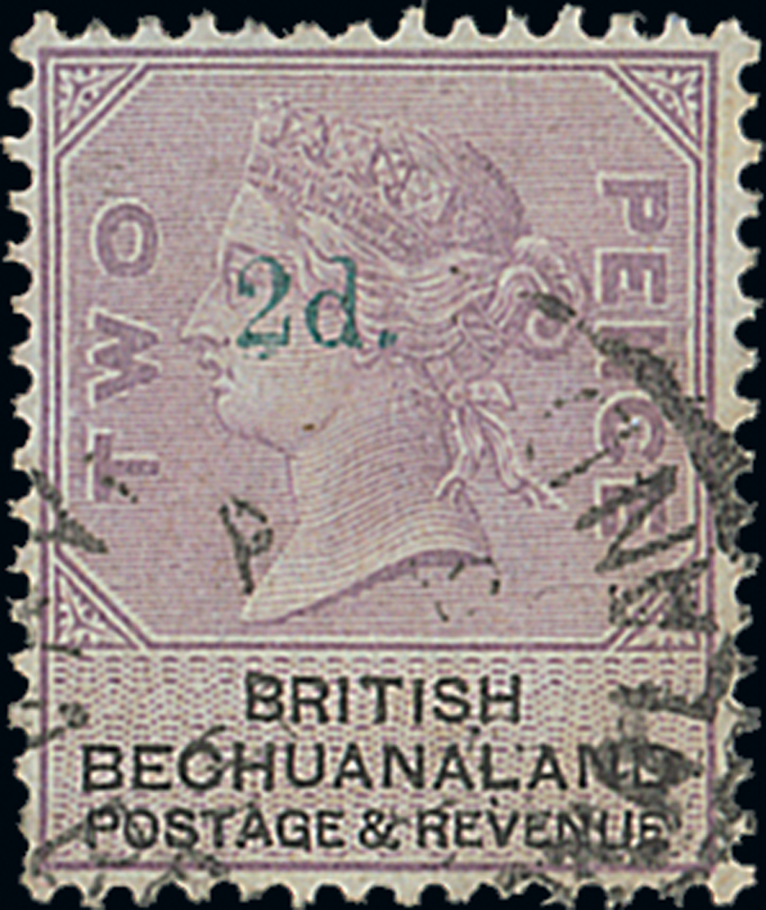 1888 (Sept.) 2d. on 2d. lilac and black, variety surcharge in green, fine used. Very rare. Brandon Certificate (2004). S.G. 23c, £4,000. Photo