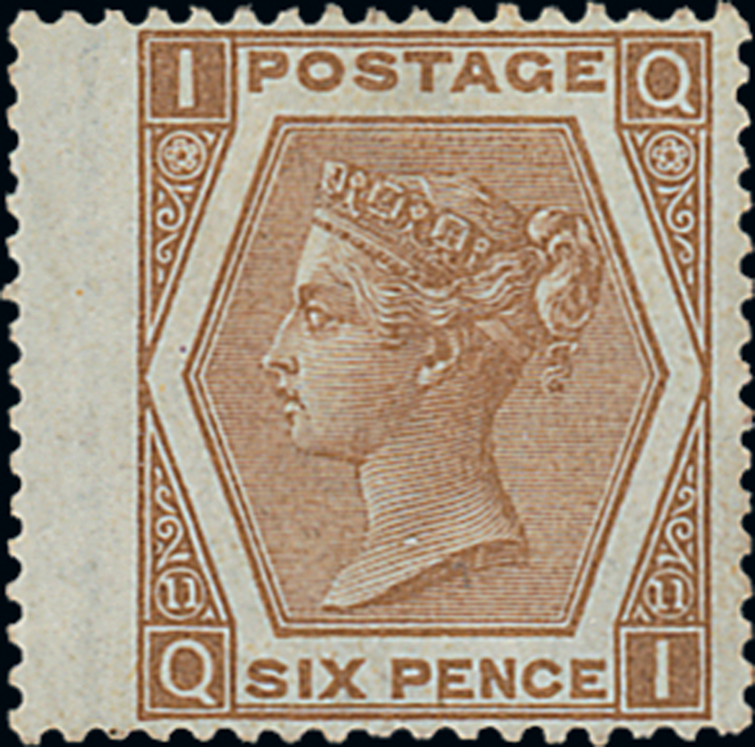 6d. deep chestnut, Plate 11, QI, large part original gum, wing margin at left, bright colour, tiny gum wrinkles, fine. S.G. 122, £1,100. Photo