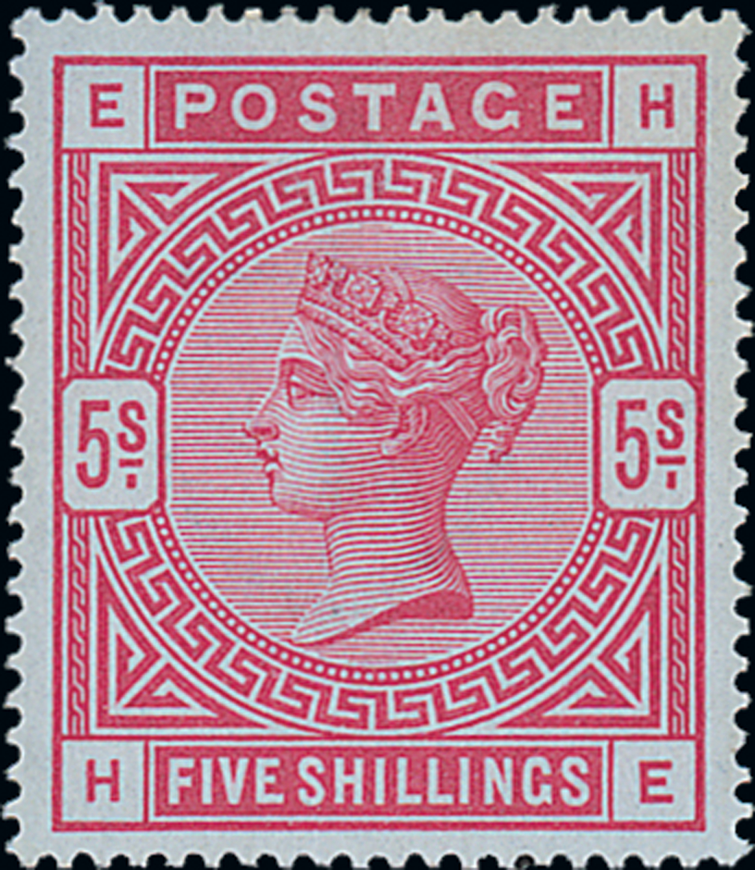5/- rose, HE, large part original gum, light vertical gum crease, good colour and perfs., fine appearance and rare. P.E. (G.B.) Certificate (1993). S.G. 176, £18,000. Photo