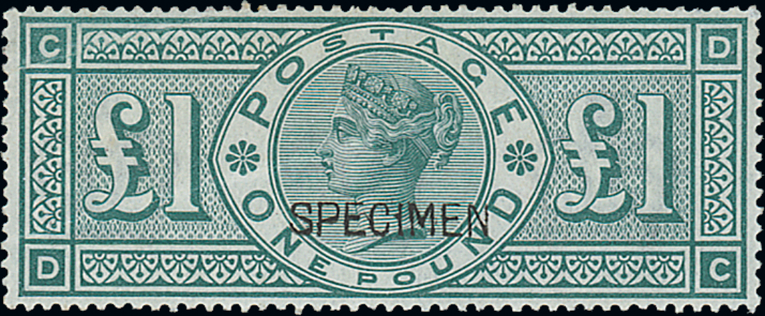 DC, overprinted "specimen" type 16, part original gum; heavy diagonal creases but fresh appearance and a scarce type. Specialised from £1,100. Photo