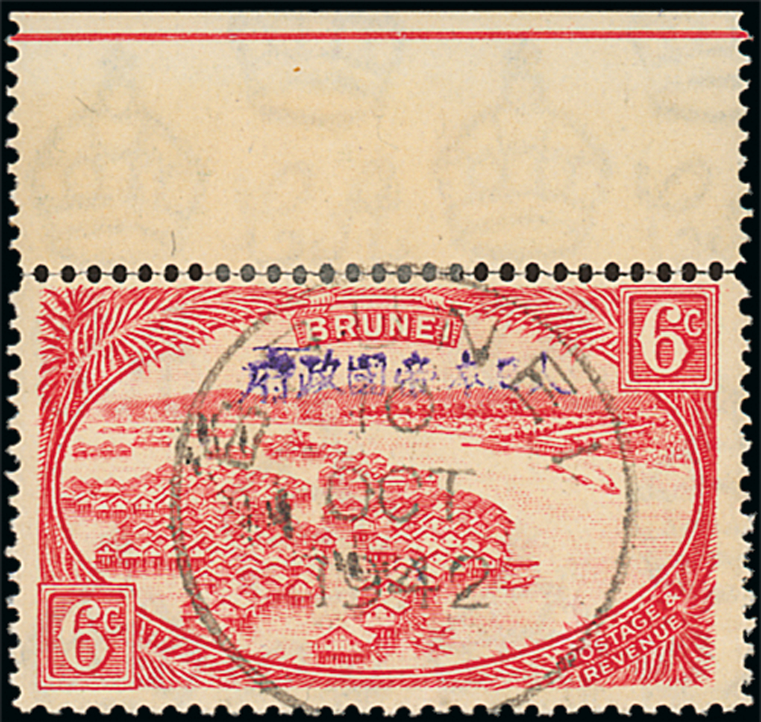 6c. scarlet, marginal from the top of the sheet (margin severed and rejoined), fine used. Scarce. B.P.A. Certificate (1965). S.G. J8, £550. Photo