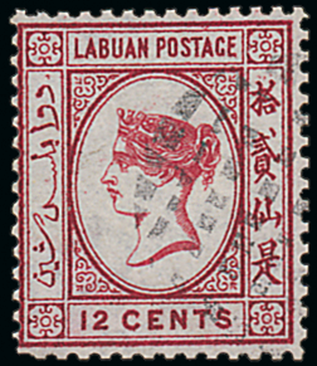 12c. carmine cancelled with lozenge of squares and oblongs, fine. Scarce. S.G. 3, £750. Photo