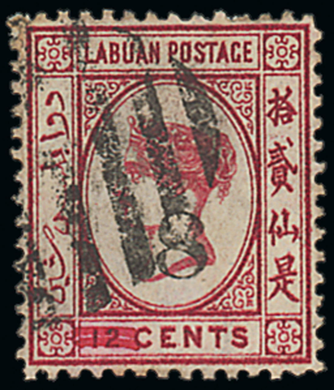 — 8c. on 12c. carmine, part oval of bars cancellation; sound. S.G. 11, £850. Photo