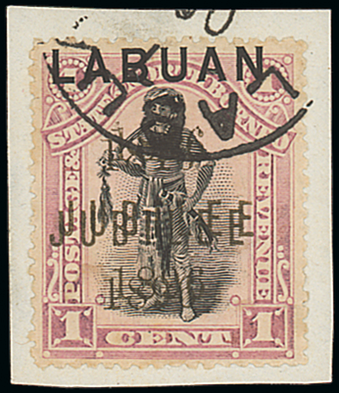 1c. black and grey-mauve, variety overprint double (widely spaced), fine used on small piece. R.P.S. Certificate No. 78,521, not now present. S.G. 83ea, £375. Photo