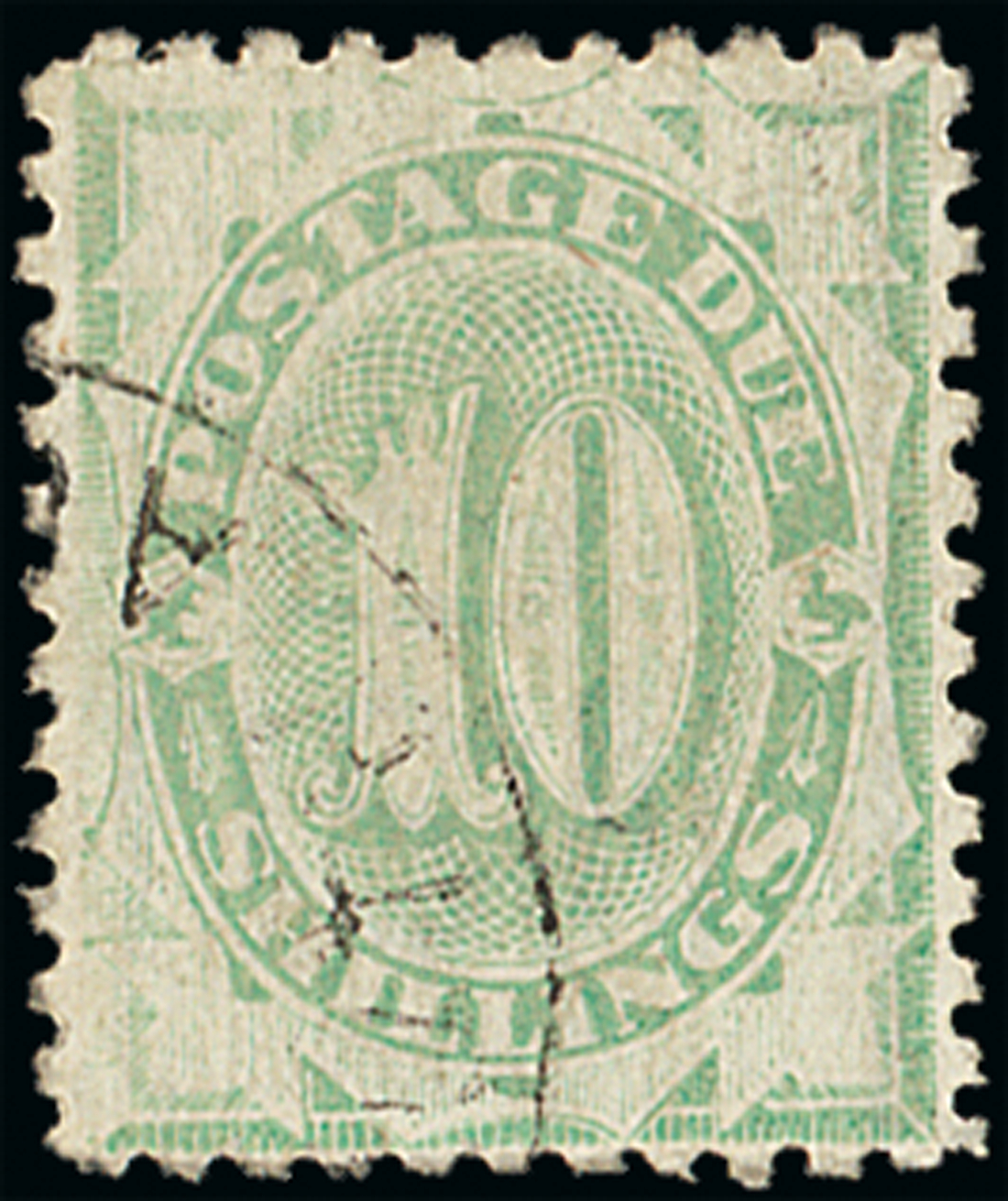 1902-04 perf. 11 10/- dull green, neatly cancelled with part c.d.s. at lower left corner; a presentable example of this rare stamp. S.G. O43, £1,800. Photo