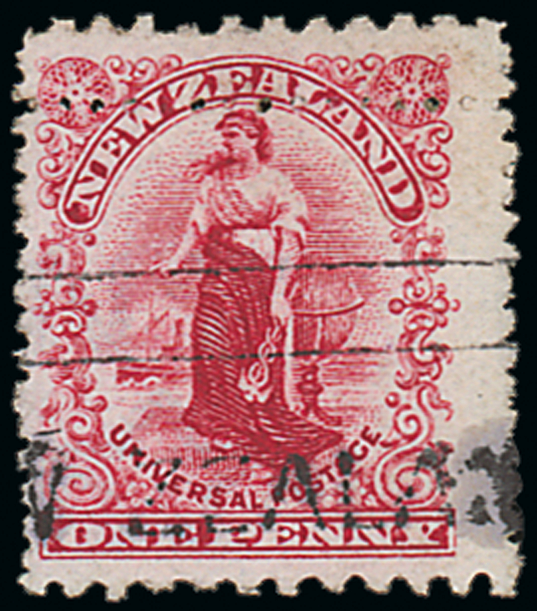 — mixed perfs., 1d. deep carmine from Reserve Plate, machine cancellation. Scarce. CP G6d, $650; S.G. 307b, £300. Photo