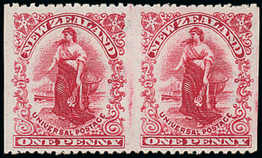 1906 Waterlow trial plate, perf. 14, 1d. deep rose-carmine horizontal pair, variety imperforate vertically, fresh mint. Scarce. CP G9a (1)Z, $750. S.G. 352ba, £300. Photo
