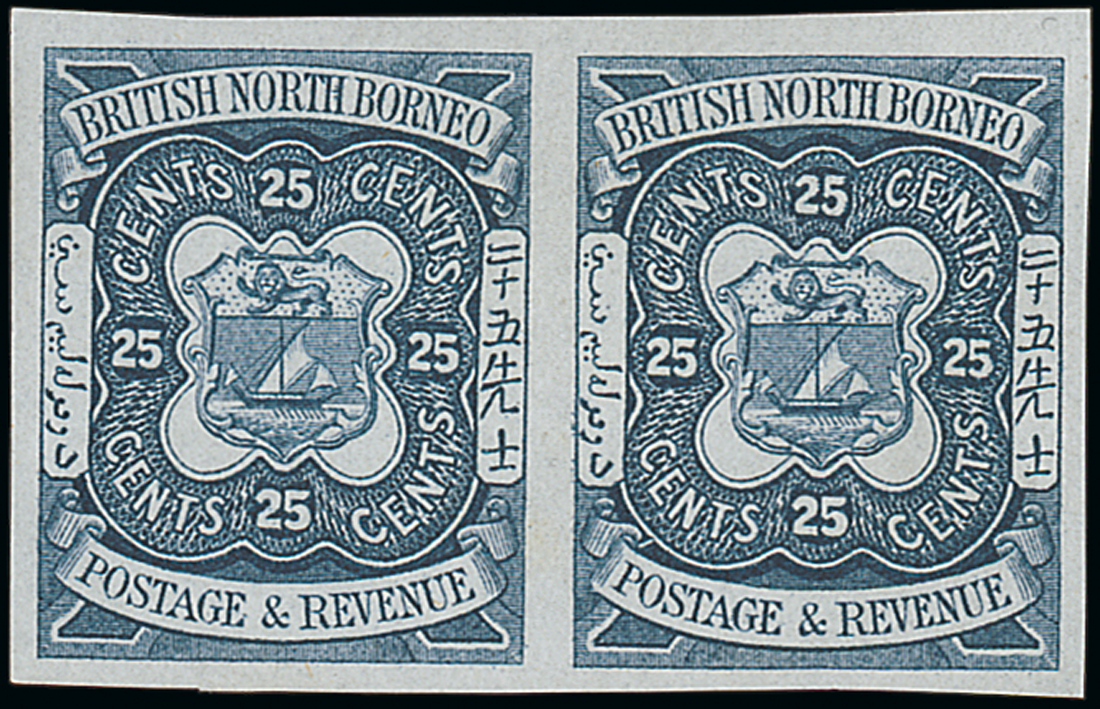 25c. indigo horizontal pair, variety imperforate, fresh unused without gum as usual. S.G. 45a, £425. Photo
