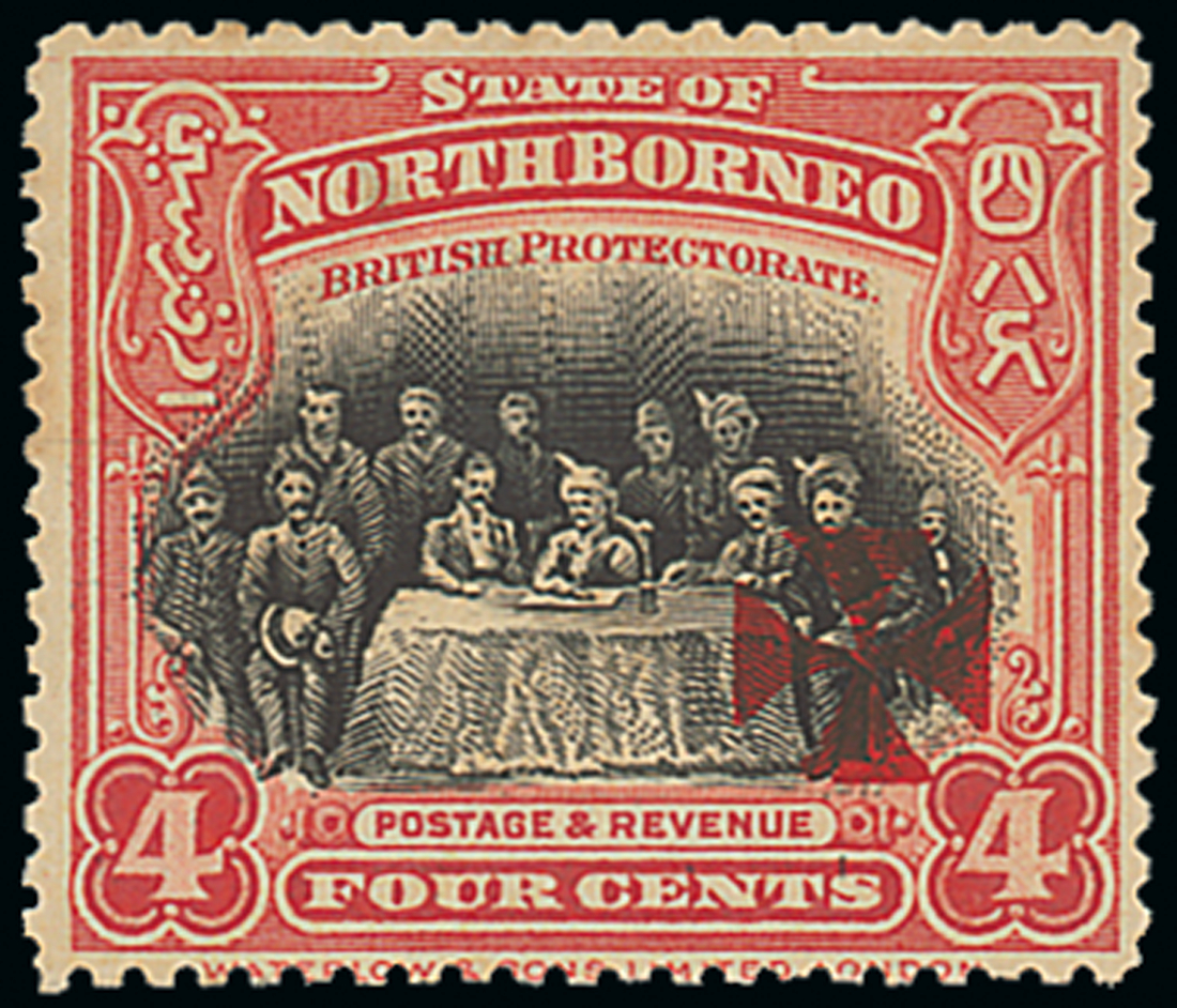 4c. black and scarlet, mint; gum a fraction soiled and with faint mark showing through to face. Scarce. S.G. 204a, £800. Photo