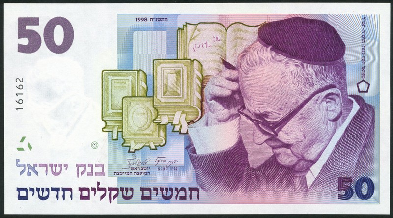 (x) Bank of Israel, 50 new sheqalim, 1992, purple, Agnon at right, no serial numbers on reverse and a vertical 5 digit number 16162 at left