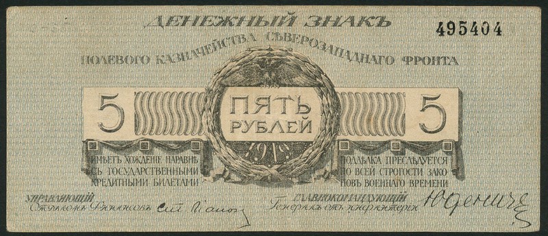 Field Treasury, Northwest Front, Russia, a small group of the 1919 issue comprising, 50 kopeks, and 1, 3 (2), 5 (5), 10 (2), 25 (2) and 100 rubles