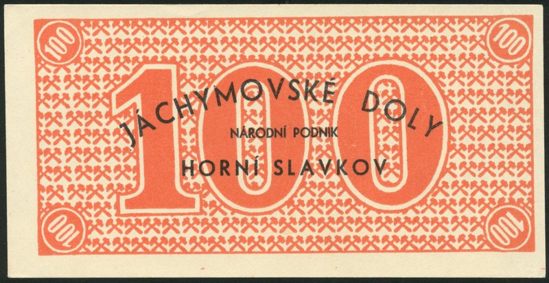 Jachymoyske Uranium Mines, Czechoslovakia, a set of notes comprising 1 ruble (2), 2, 5, 10 50 and 100 units, (c.1945 onwards), all with values at centre and each corner, crossed hammers pattern in background,