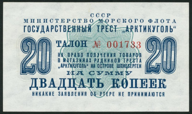 (x) Spitzbergen Coal Mine, Russian Administration, a full set of the 1961 issue, comprising 1 ruble, brown, 2 rubles, blue, 3 rubles, green, 5 rubles, indigo, 10 rubles, red, 20 rubles, dark blue-green, all with value at left and right