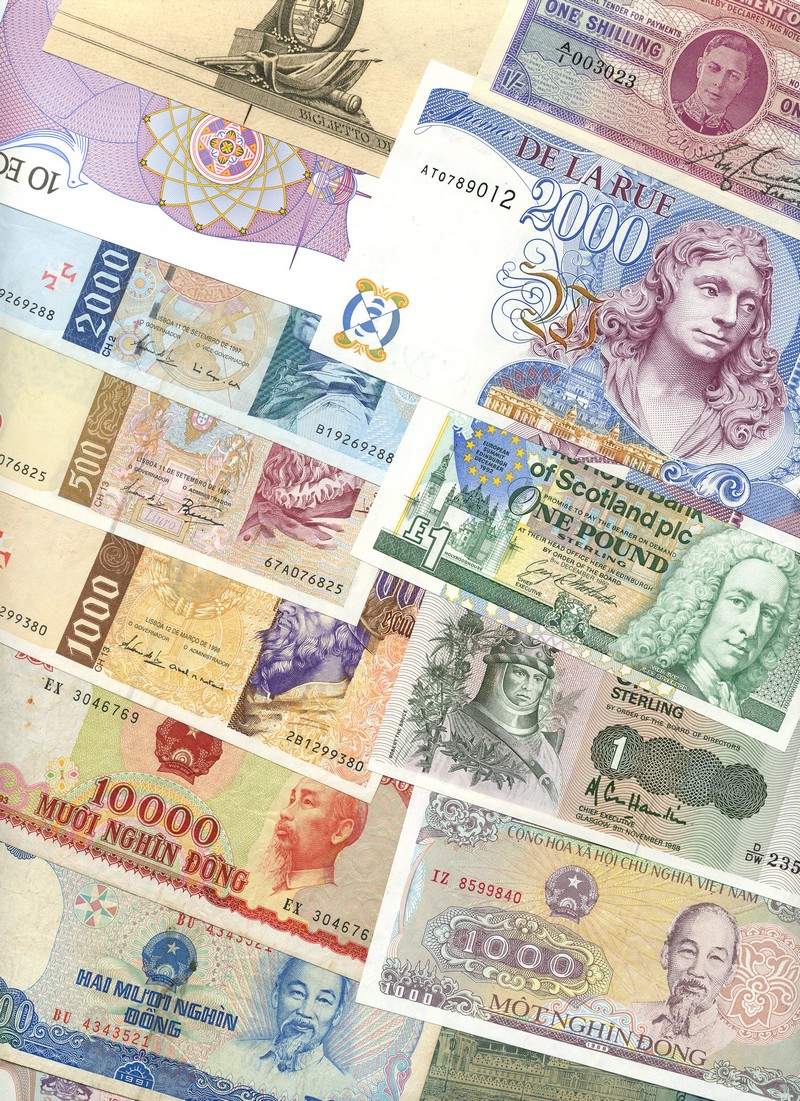 A small group of world notes, including Government of Malta, 1/-, serial number A/1 003023, multicolour, George VI at centre, and an assortment of other mixed world notes