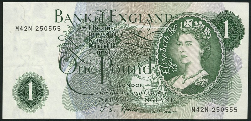 Bank of England, J.S Fforde, £1, prefix M42N, green, Elizabeth II at right