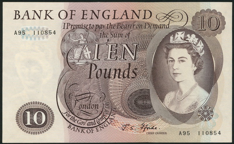 Bank of England, J.S.Fforde, £5, prefix M09, blue and £10, prefix A95, brown, both Elizabeth II at right