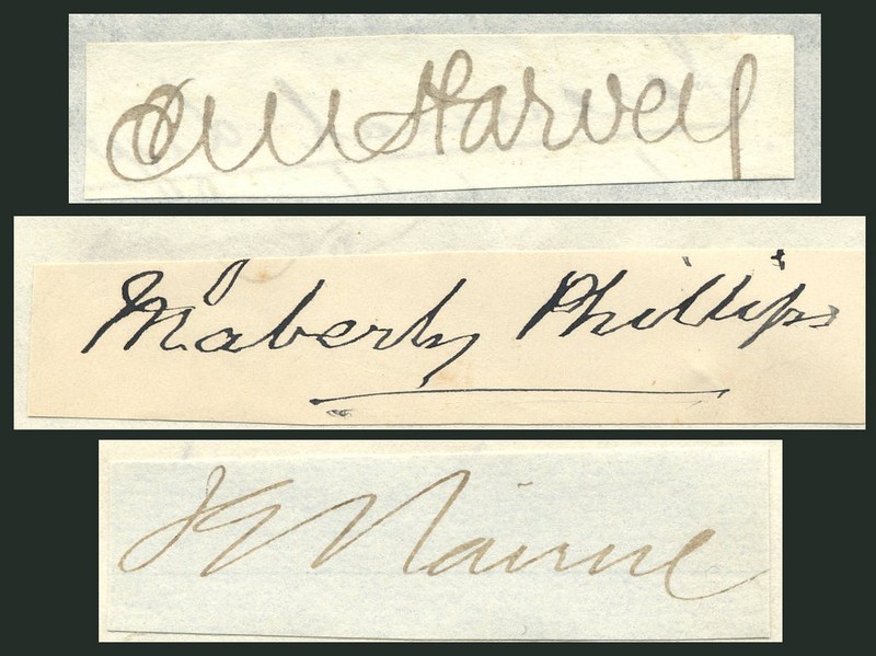 Bank of England, a group of sheets of signatures of employees of the Bank of England, including the two chief cashiers E.M.Harvey and J.G.Nairne, and Maberly Phillips author of A History of Banks and Banking,