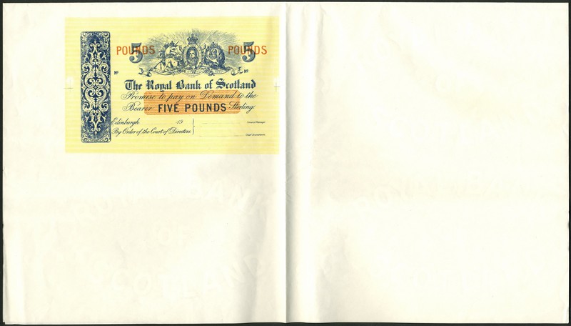 Royal Bank of Scotland, £5 proof on watermarked paper, ND slightly larger than A3 watermarked paper with only one £5 proof at left hand corner on obverse, reverse clean