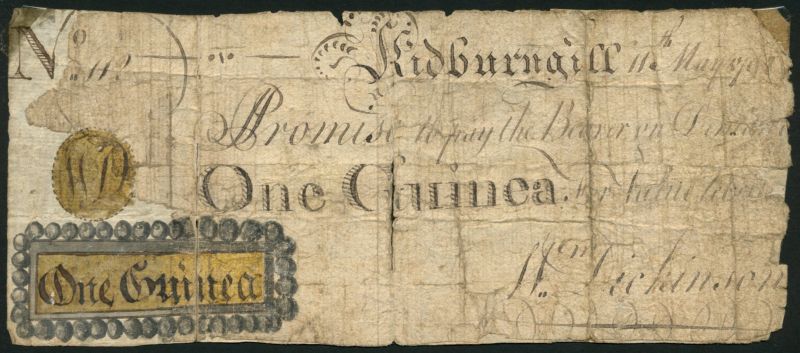 Kidburngill, 1 guinea (2), 1797, serial number 30 and 112, black and white, all hand executed and signature of Wm. Dickinson low right