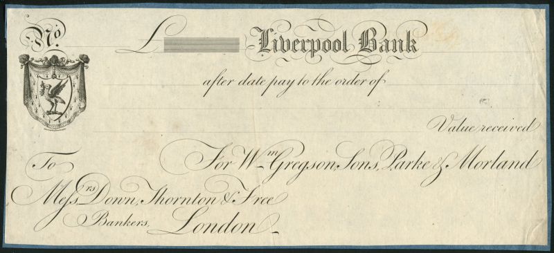 Liverpool Bank (Gregsons, Parkes and Clay), a sight bill dated 18 July 1804, serial number 804, black and white, arms at left, also proof sight bills(2), black and white