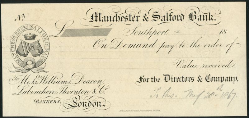 Manchester & Salford Bank, prood demand notes and sight bills (11), 18-, black and white, arms at left