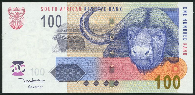 (x) South African Reserve Bank, 10 rand, rhino, 20 rand, elephant, 50 rand, lion, 100 rand, buffalo, 200 rand, leopard, all ND (2005)