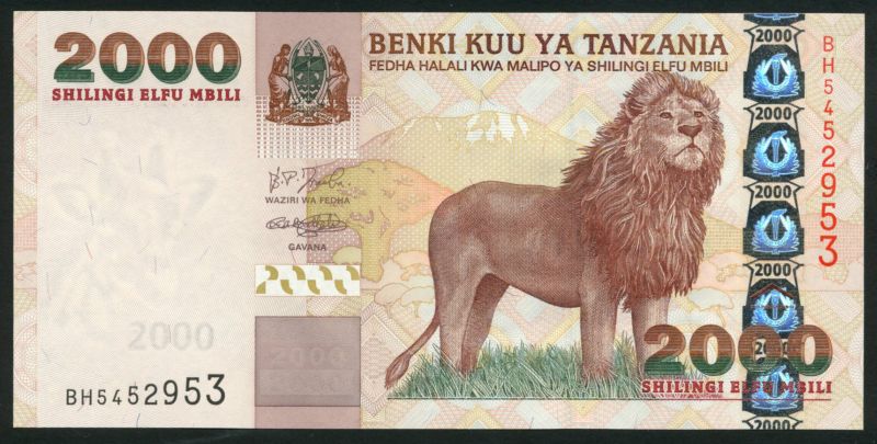 Bank of Tanzania, a selection of notes from the ND (2000), 500, 1.000, 2,000, 5,000 and 10,000 shilingi, ND (2003).