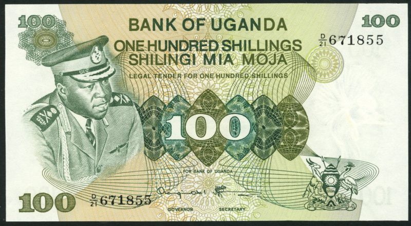 (1973-1977), all President Idi Amin at right on obverse.