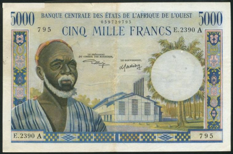 (x) Banque Centrale des Etats de l'Afrique de l'Ouest, a sizable group comprising 100 Francs (4), 20 March 1961, signature 2 (2), 2 December 1964, signature 3, ND, signature 4, all brown, orange and multicoloured, mask at left, reverse woman; 500 Francs, ND, signature 10, brown, green and multicoloured, mask at right, reverse woman and tractor; 1000 Francs (14), 20 March 1961, signature 1 (4), signature 2 (4), 2 March 1965, signature 4, ND, signatures 5, 6, 7, 9 and 11, all brown, blue and multicoloured, man and woman at right, reverse man and suspension bridge, 5000 Francs, ND, signatures 9 and 11, both blue and multicoloured, man at left, factory at centre, reverse woman at right, youths and huts at centre, all code letter "A" for Ivory Coast