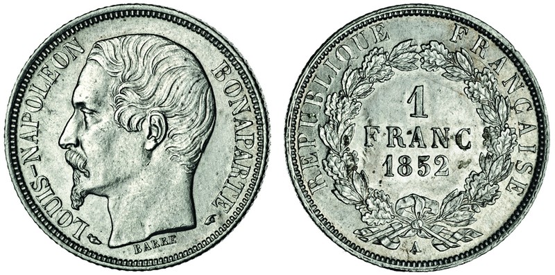 (g) France, Second Republic (1848-52), Paris, Franc, 1852 A, head of Napoleon III left, rev. value in wreath (Gad.133; KM.772; VG 3316), extremely fine