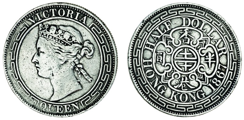 Hong Kong, Victoria (1837-1901), Half-Dollar, 1867, crowned head left, rev. English and Chinese value around ornamental design (KM.8), fine, scarce
