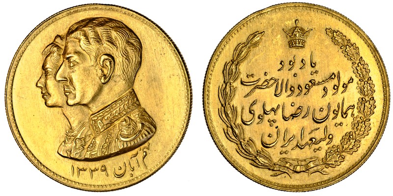 Iran, Mohammad Reza Shah (1941-79), gold medal, SH 1339, busts of the Shah and Queen Farah Diba left, rev. inscription in wreath, 30.94g, extremely fine