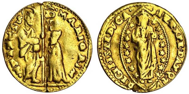 (x) Italy, Venice, Marino Grimani (1595-1606), Zecchino, 3.38g (F.1274; P.1), polished and removed from a mount, good
