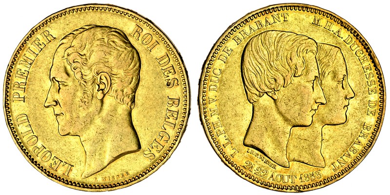 (x) Belgium, Leopold I (1831-65), medallic 100-Francs by L. Wiener, 1853, on the marriage of the Duke and Duchess of Brabant, head of Leopold left, rev. heads of the Duke and Duchess right, lettered edge (Dupriez 538; F.409; KM.M.3.1), very fine, scarce, only 482 struck