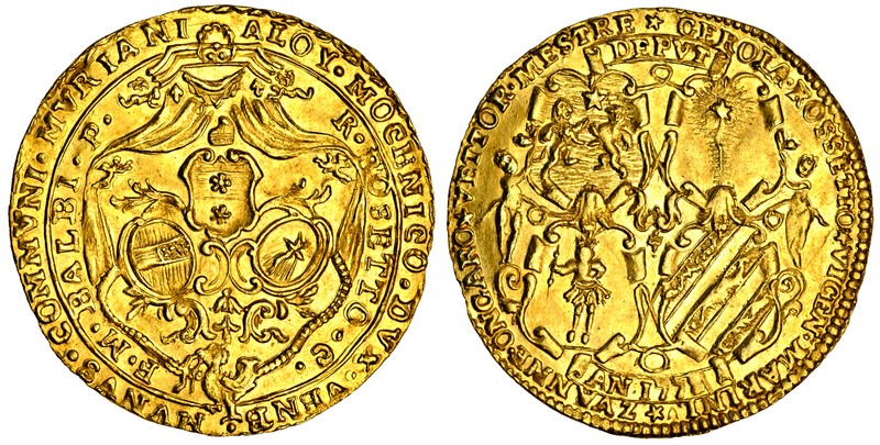 Paolucci lists a 4-Zecchini but not a 3-Zecchini for Alvise IV Mocenigo. Strikings in gold to the weight of 3-Zecchini are listed for other years for this Doge, including 1776 for Murano.