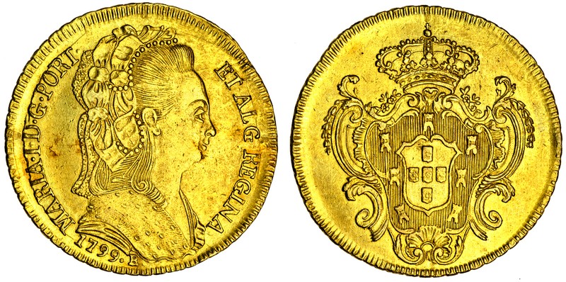 (x) Brazil, Maria I (1786-99-1805), Bahia, Peça (6,400-Reis), 1799 B, bust right, rev. crowned arms (F.88; Gomes 24.10; KM.226.2), good very fine