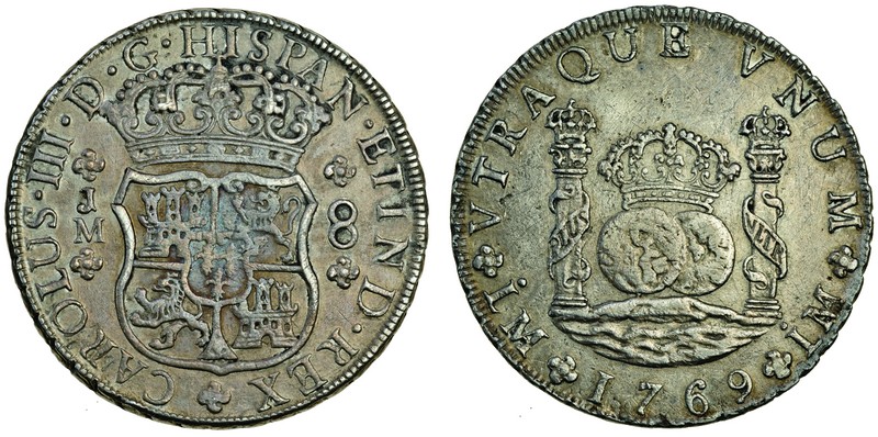 Peru, Charles III (1759-88), Lima, 8-Reales, 26.86g, 1769 JM, dots over both monograms (Cal.350; Cay.11966; KM.A64.1), cleaned, very fine