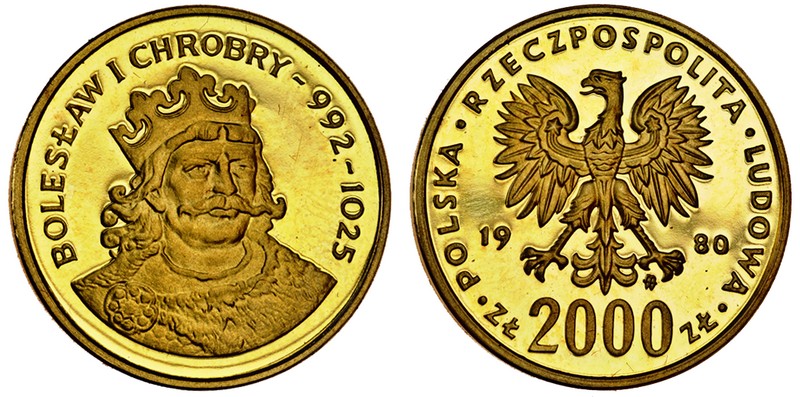 Poland, Republic, proof 2000-Zlotych, 1980, eagle, rev. King Boleslaw I (F.125; KM.Y116), brilliant uncirculated