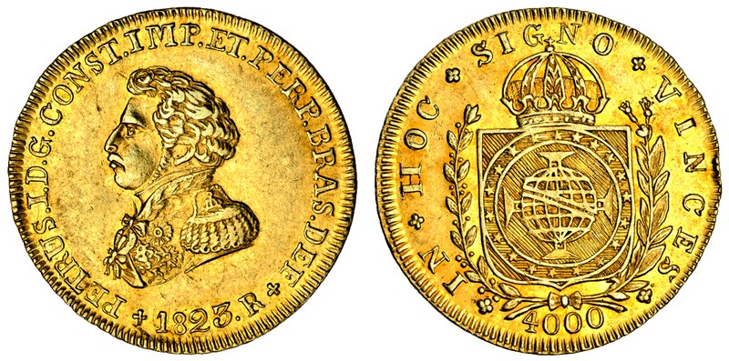 (g) Brazil, Pedro I (1822-31), Rio, 4,000-Reis, 1823 R, uniformed bust left, rev. crowned shield in wreath (F.110; KM.369.1), good very fine