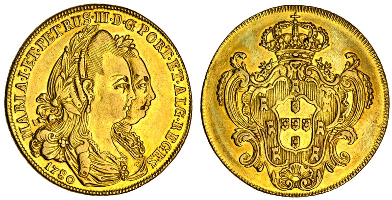 (x) Portugal, Maria I and Pedro III (1777-86), 4-Escudos or Peça, 1780, busts right, rev. crowned arms (F.107; Gomes 23.04; KM.271), cleaned, good very fine