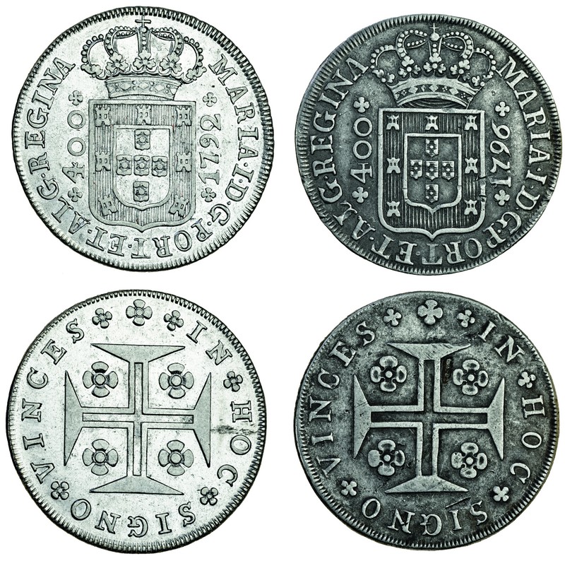 Portugal, Maria I (1786-99), Cruzado Novo (480-Réis) (2), 1792, 1796 (Gom.18.06; 18.02), one lightly cleaned, good fine (2)